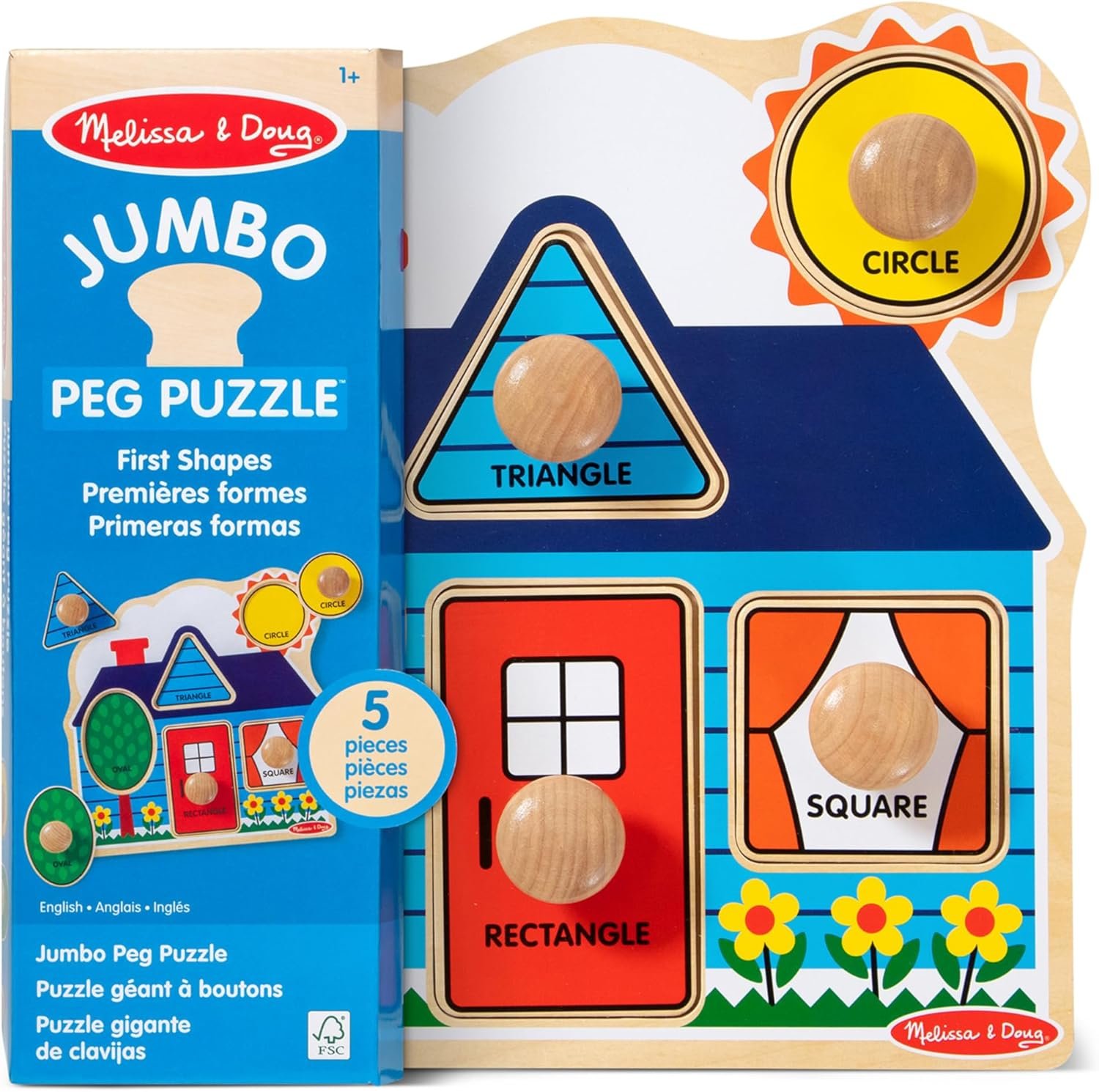 Melissa & Doug First Shapes Jumbo Knob Puzzle, Wooden Peg Puzzle for Toddlers, Educational Toy for Shape Recognition and Fine Motor Skills, Ages 1+