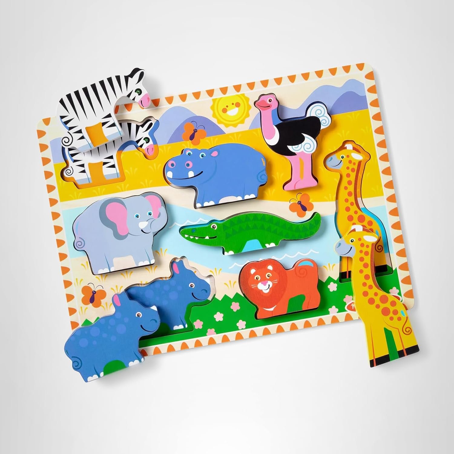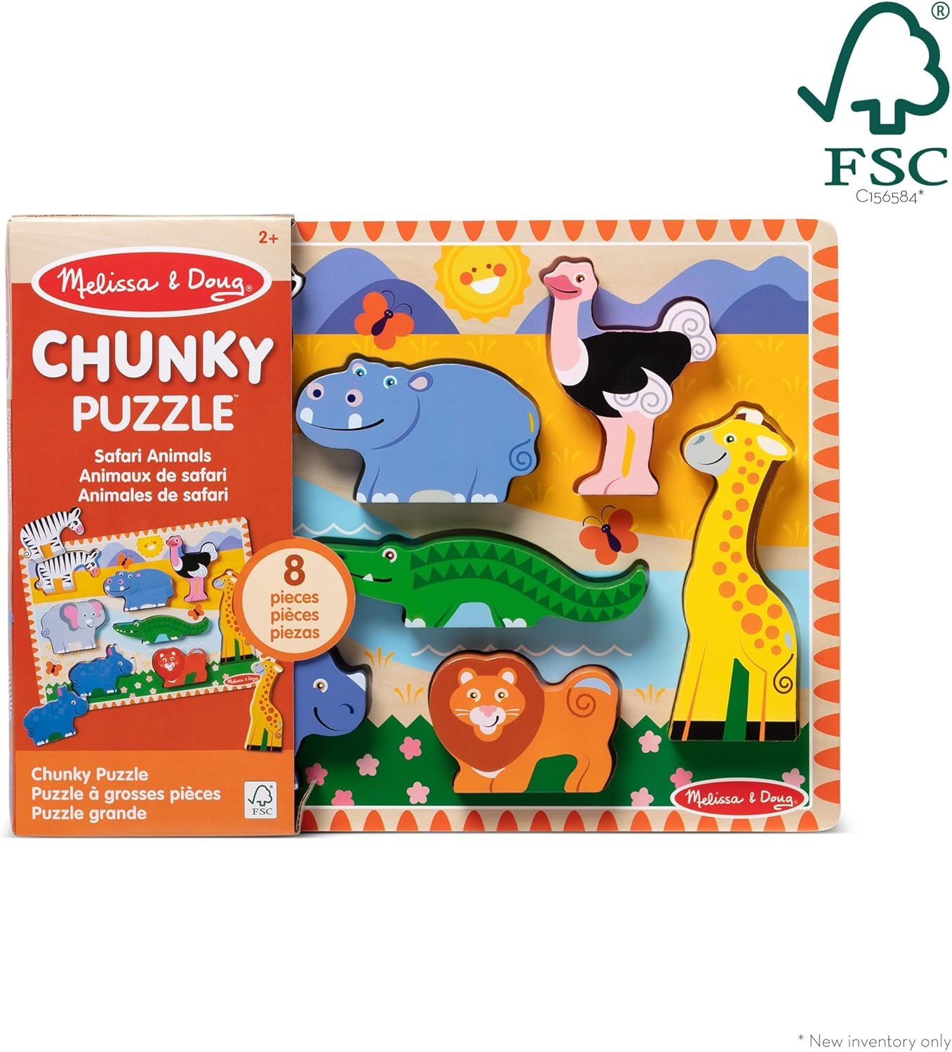 Melissa & Doug Safari Wooden Chunky Puzzle (8 pcs), Educational Screen Free Activity for Toddler, Preschoolers and Kids Ages 2+ – FSC Certified