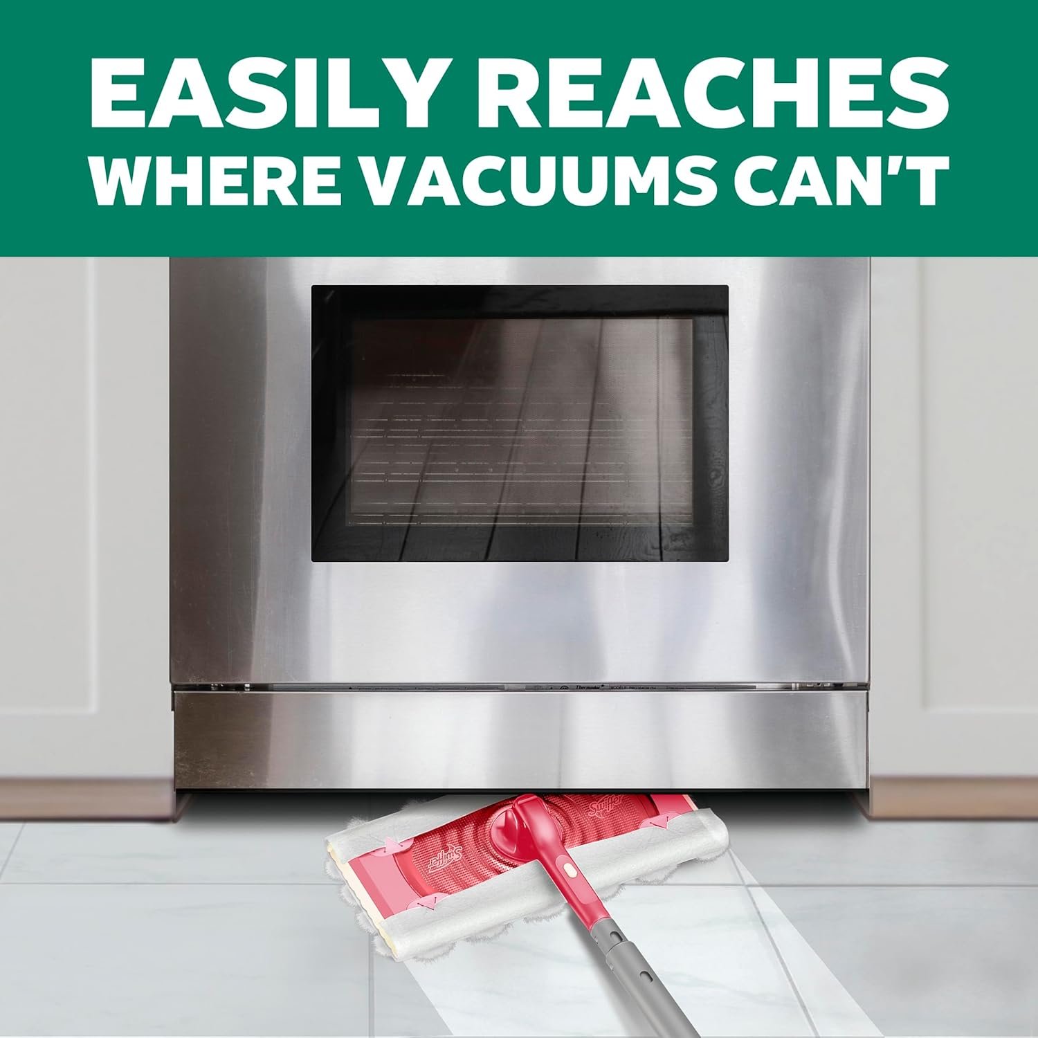 - Brooms and vacuums often leave behind invisible hair, fine dirt, and dust. Swiffer Sweeping Cloths have thousands of microscopic fibers that act as a hair magnet to clean what others leave behind, trapping hair, dirt, and dust deep within the cloth’s core.